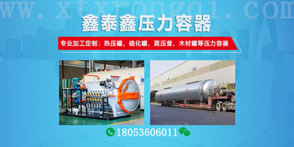 您好,歡迎來到山東鑫泰鑫智能裝備有限公司網(wǎng)站!我們?yōu)槟峁└鞣N規(guī)格的硫化罐、熱壓罐、蒸壓釜、木材罐等壓力容器設(shè)備及服務(wù)。